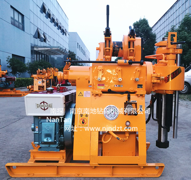 鉆機介紹:XY-200型鉆機集合了目前市場流行的XY-1、XY-1B、XY-1A等小型鉆機的主要功能和特點設計而成的。即采用XY-1的油壓自動給進,XY-1B的大模數齒輪傳動系統,XY-1A的寬范圍轉速的較大扭矩輕型回轉鉆機。 為使本機的適用性更廣泛,滿足不同用戶的需求,推出移機型XY-200(YJ)型鉆機(帶移機功能)、增加了水泵(不帶移機) 的XY-200-1型和帶移機帶水泵功能的XY-200-2型鉆機。鉆機、柴油機(或電動機)安裝在同一底座上。鉆進深度可達200米。